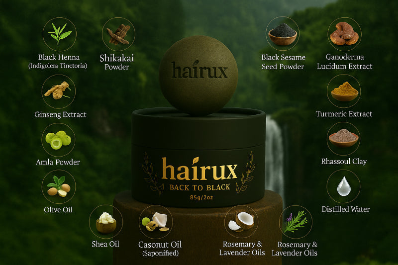 تركيبة طبيعية تعمل على استعادة اللون الأسود للشعر تدريجيًا دون صبغات أو مواد كيميائية. مثالية لمن يعانون من الشيب المبكر وتمنح مظهراً أكثر شباباً.