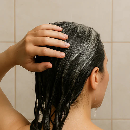 يُستخدم أثناء الاستحمام تمامًا كالصابون، ينتج رغوة غنية تنظف وتغذي الشعر بعمق. سترى الفرق في الملمس واللون خلال أسابيع قليلة فقط.